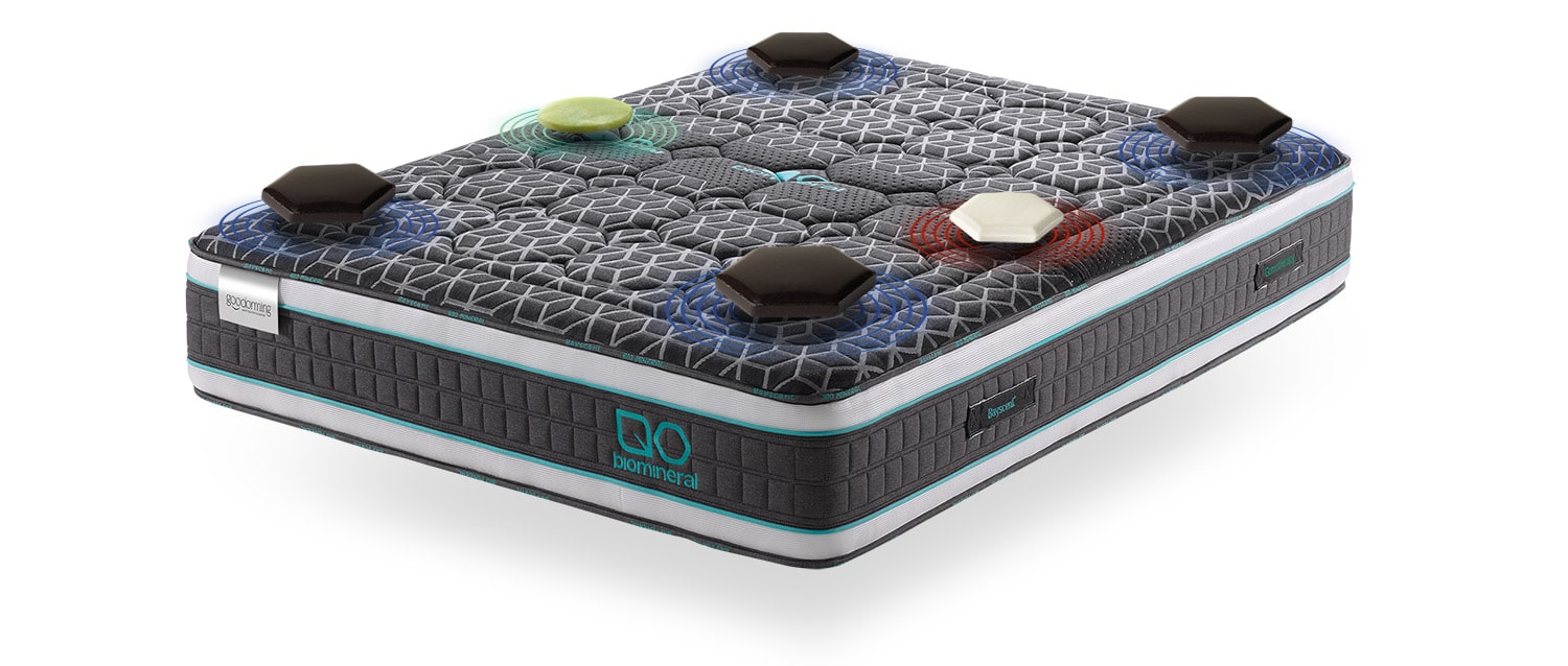 O Colchão Biomineral Germanium traz ao seu descanso os benefícios do germânio, do jade, dos infravermelhos longínquos e do grafeno durante o sono, graças aos efeitos da termoterapia, proporcionando assim um descanso profundo e o equilíbrio do nosso corpo.