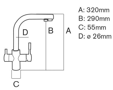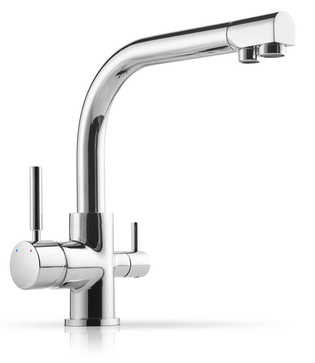 Possui duas saídas de água, uma para a corrente e outra para a água filtrada.